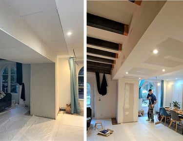 Pose de cloisons et plafonds parfaitement ajustés.